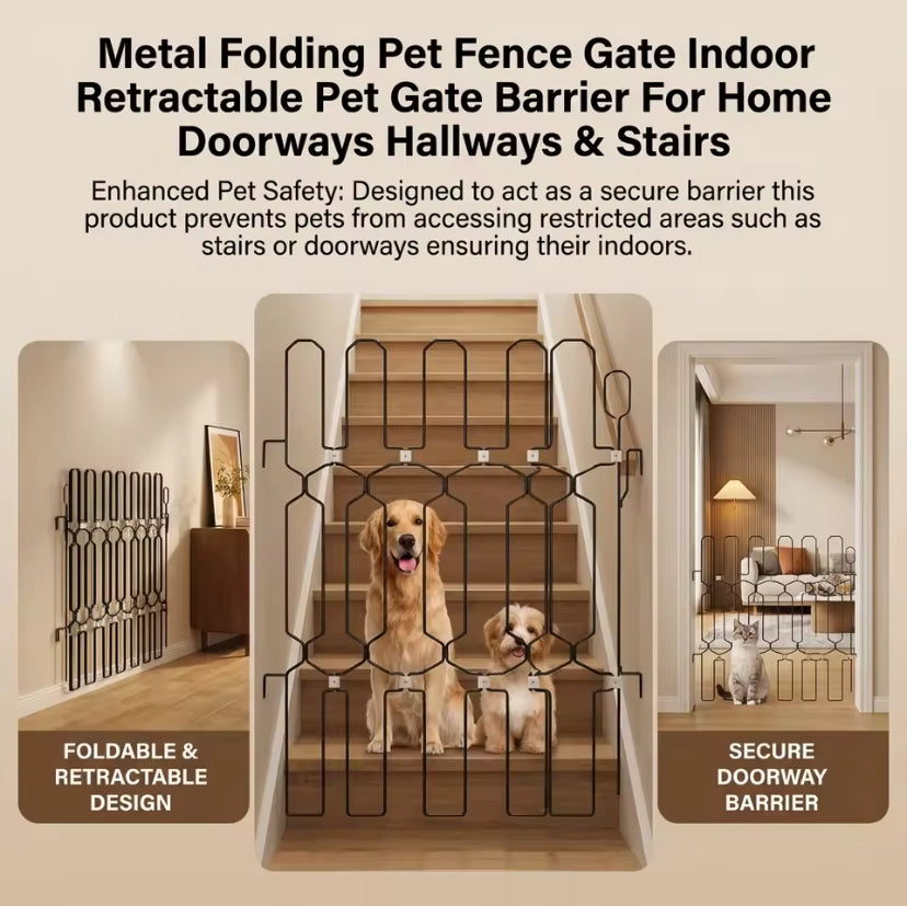 Cancello Pieghevole in Metallo per Animali Domestici, Barriera Retrattile per Interni, Recinzione Durevole e Salvaspazio per Casa, Porte, Corridoi e Sca