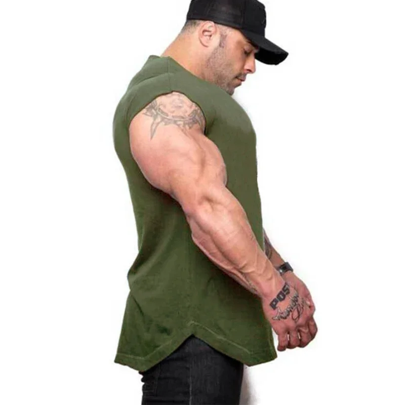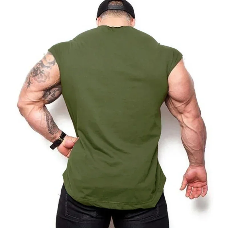 Summer Cotton Breathable Sleeveless T-shirts Gym Running Sport Vests Bodybuilding Workout Clothing Mens Fitness Muscle TankTops